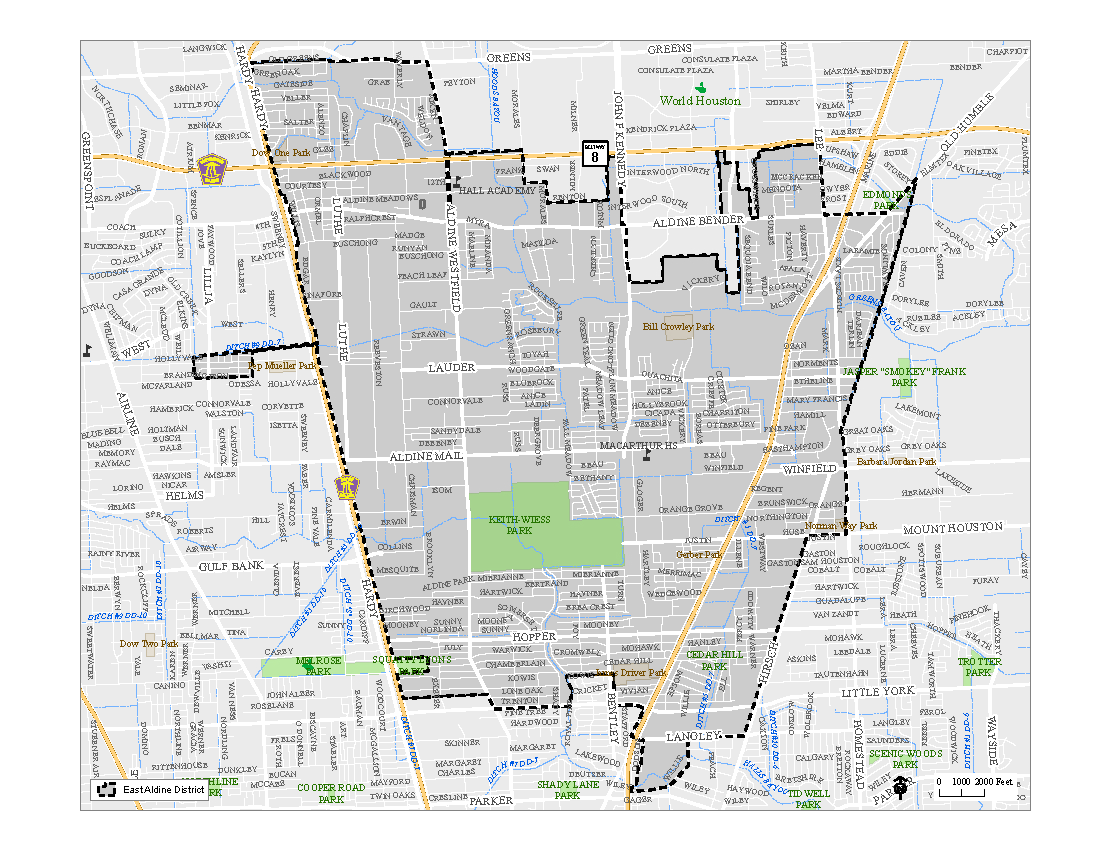 The goal of the East Aldine Livable Centers study is to create a Strategic Development Plan that ties together existing plans and leverages recent investments in the District such as improvements in the Town Center as well as infrastructure and stormwater detention enhancements. The intent is to create a plan that offers a vision for the future to help guide and prioritize implementable recommendations including multimodal access and connectivity to community amenities, services and commercial centers.