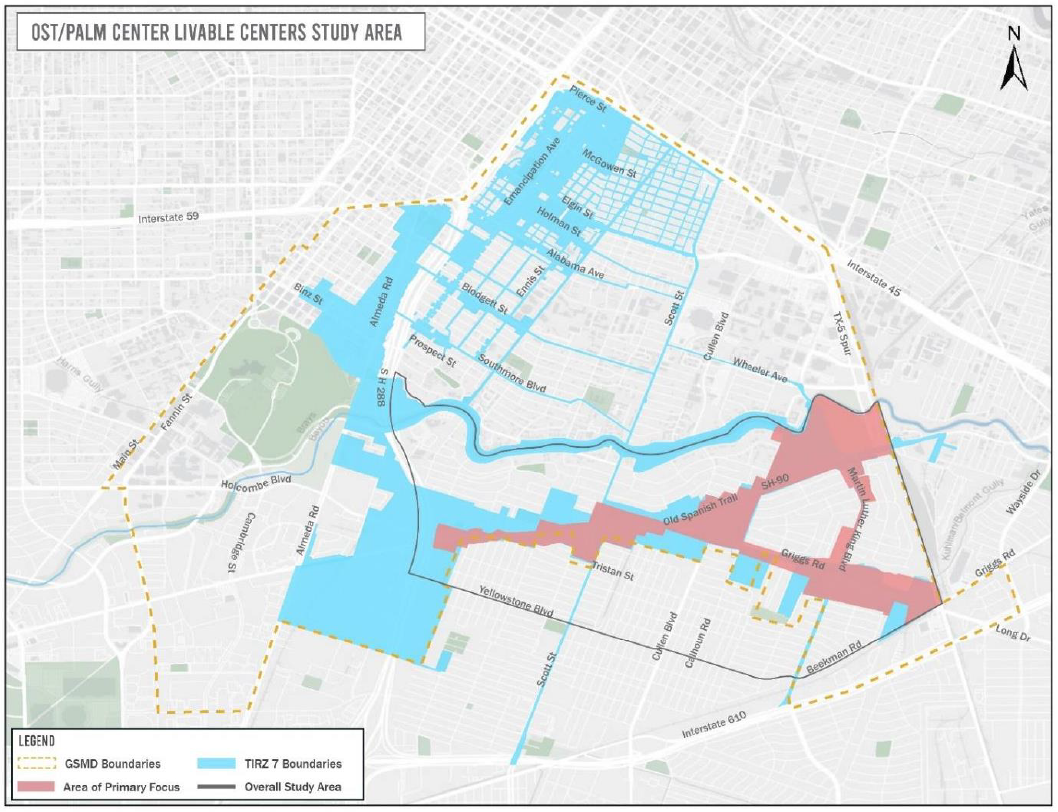 The Greater Southeast Management District endeavors to continue to promote this area by conducting strategic improvements to make the area more attractive to residents, businesses, and visitors. This Livable Centers study provides a vision for multimodal connectivity from the OST/Palm Center area to other activity centers within Houston Southeast. By expanding the existing multi-modal network, access to destinations along the District’s Economic Development Corridors as described in the Houston Southeast Community Plan, would spur commerce for sustained and equitable community revitalization.