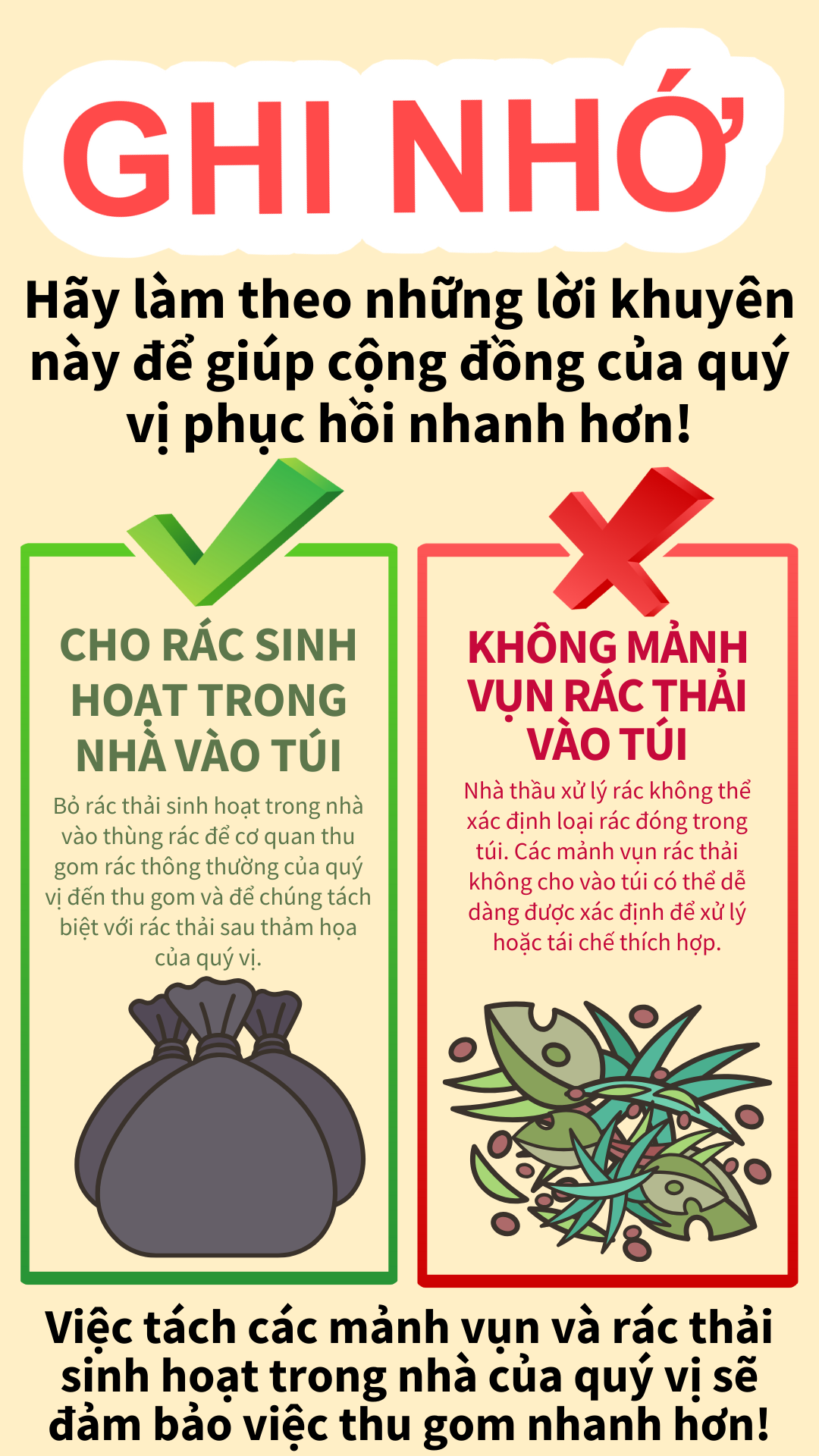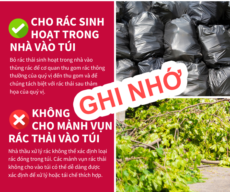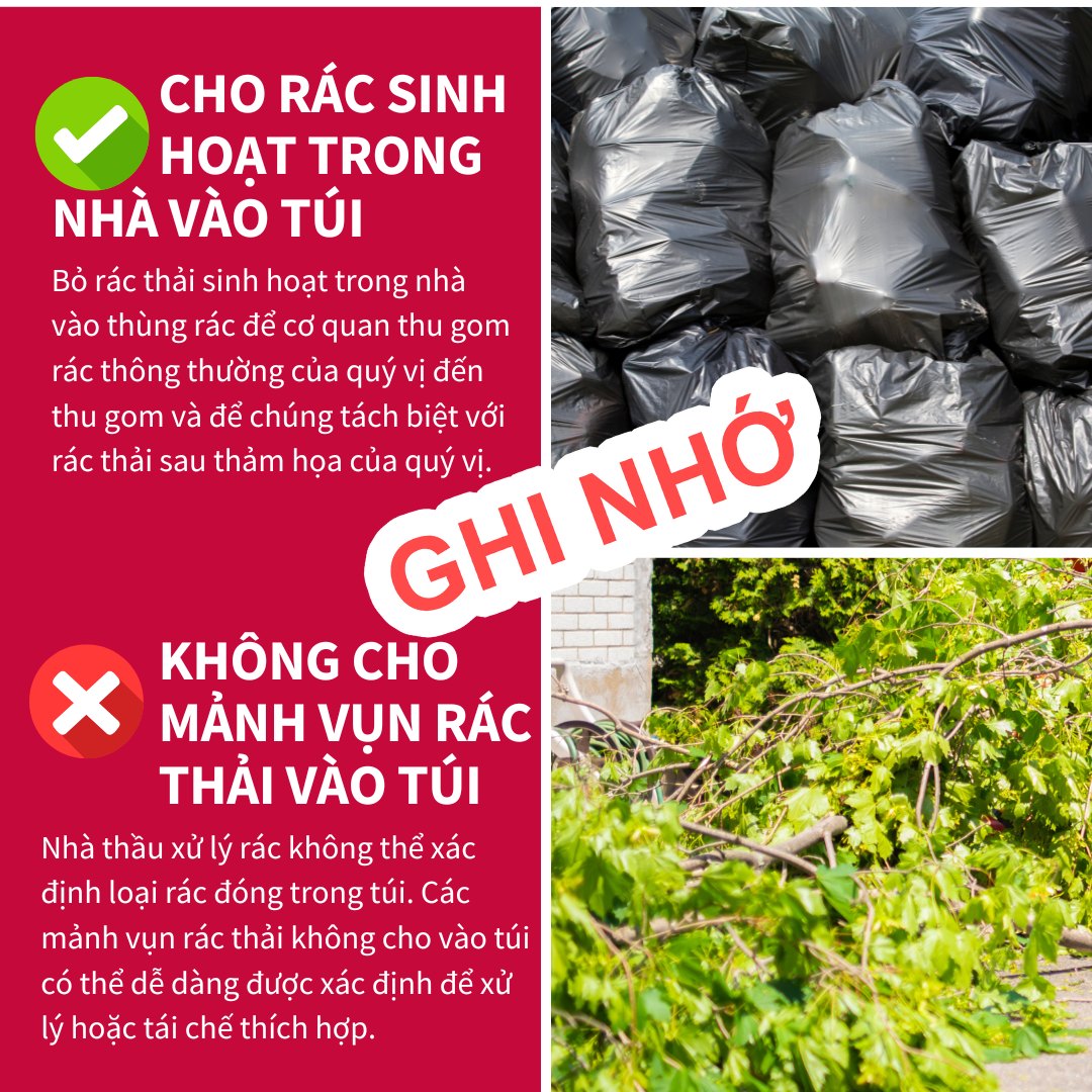 Mảnh Vụn Rác Thải Và Rác Sinh Hoạt Để giúp tăng tốc độ loại bỏ các mảnh vụn rác thải sau thảm họa, hãy làm theo các mẹo sau: 🚫ĐỪNG CHO MẢNH VỤN RÁC THẢI DO THẢM HỌA VÀO TÚI 👌ĐÓNG TÚI RÁC THẢI THÔNG THƯỜNG Việc tách biệt mảnh vụn rác thải sau thảm họa và rác thải thông thường của quý vị sẽ giúp đảm bảo cộng đồng của chúng ta phục hồi nhanh hơn! Để biết thêm thông tin, hãy truy cập www.putlinkhere.com. Chúng tôi xin cảm ơn sự hợp tác của quý vị. #DisasterDebris #DisasterRecovery |