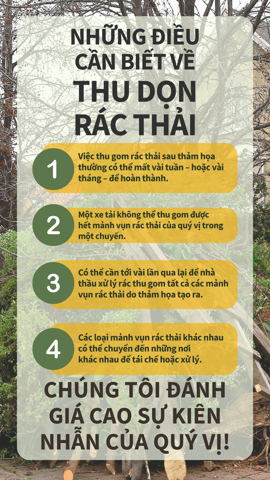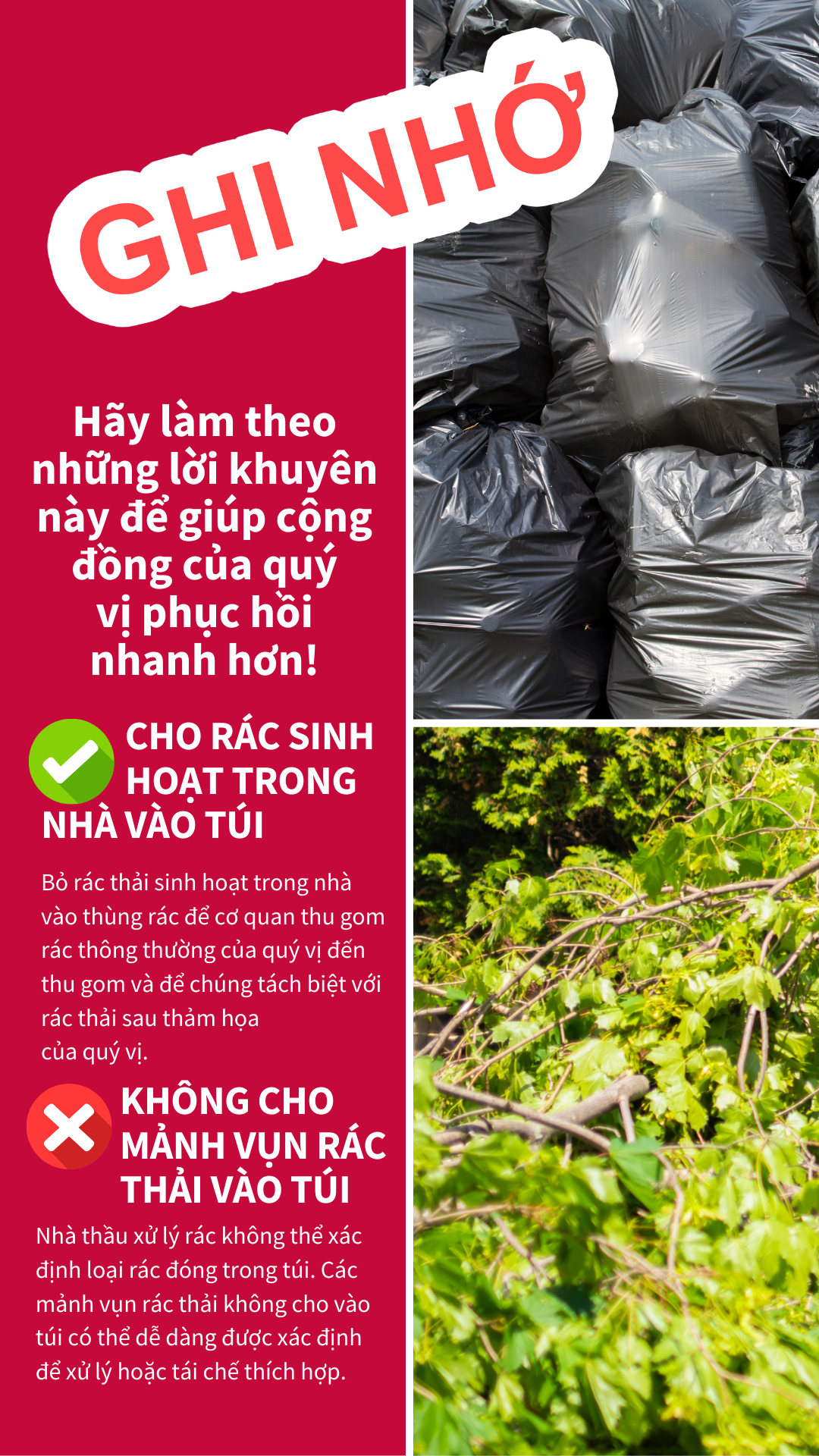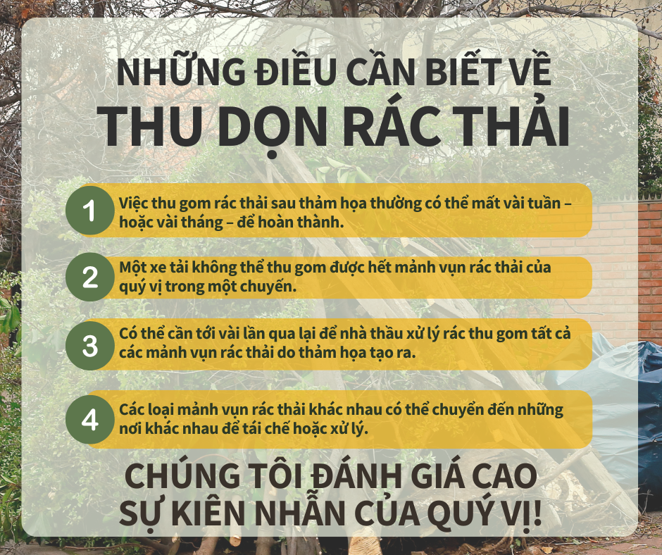 Mảnh Vụn Rác Thải Và Rác Sinh Hoạt Để giúp tăng tốc độ loại bỏ các mảnh vụn rác thải sau thảm họa, hãy làm theo các mẹo sau: 🚫ĐỪNG CHO MẢNH VỤN RÁC THẢI DO THẢM HỌA VÀO TÚI 👌ĐÓNG TÚI RÁC THẢI THÔNG THƯỜNG Việc tách biệt mảnh vụn rác thải sau thảm họa và rác thải thông thường của quý vị sẽ giúp đảm bảo cộng đồng của chúng ta phục hồi nhanh hơn! Để biết thêm thông tin, hãy truy cập www.putlinkhere.com. Chúng tôi xin cảm ơn sự hợp tác của quý vị. #DisasterDebris #DisasterRecovery |