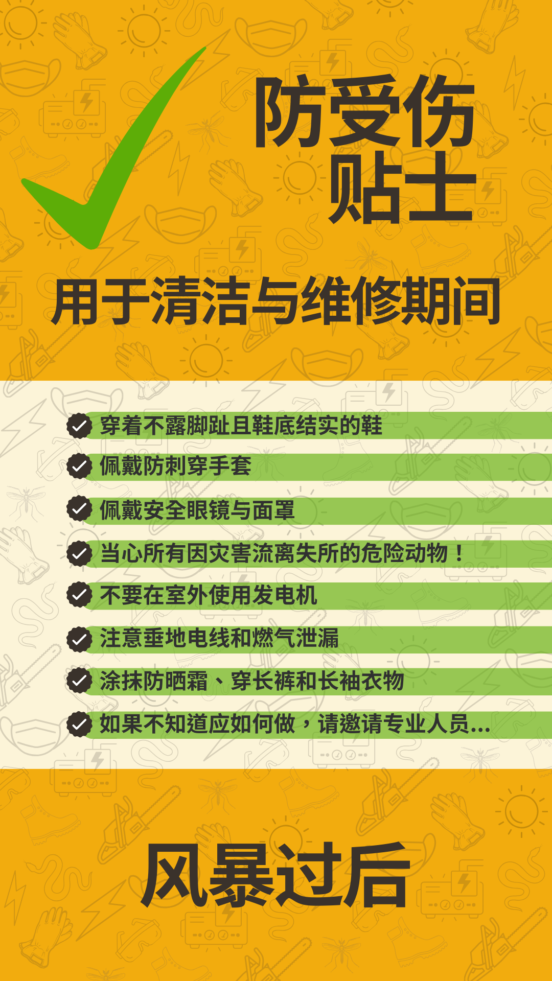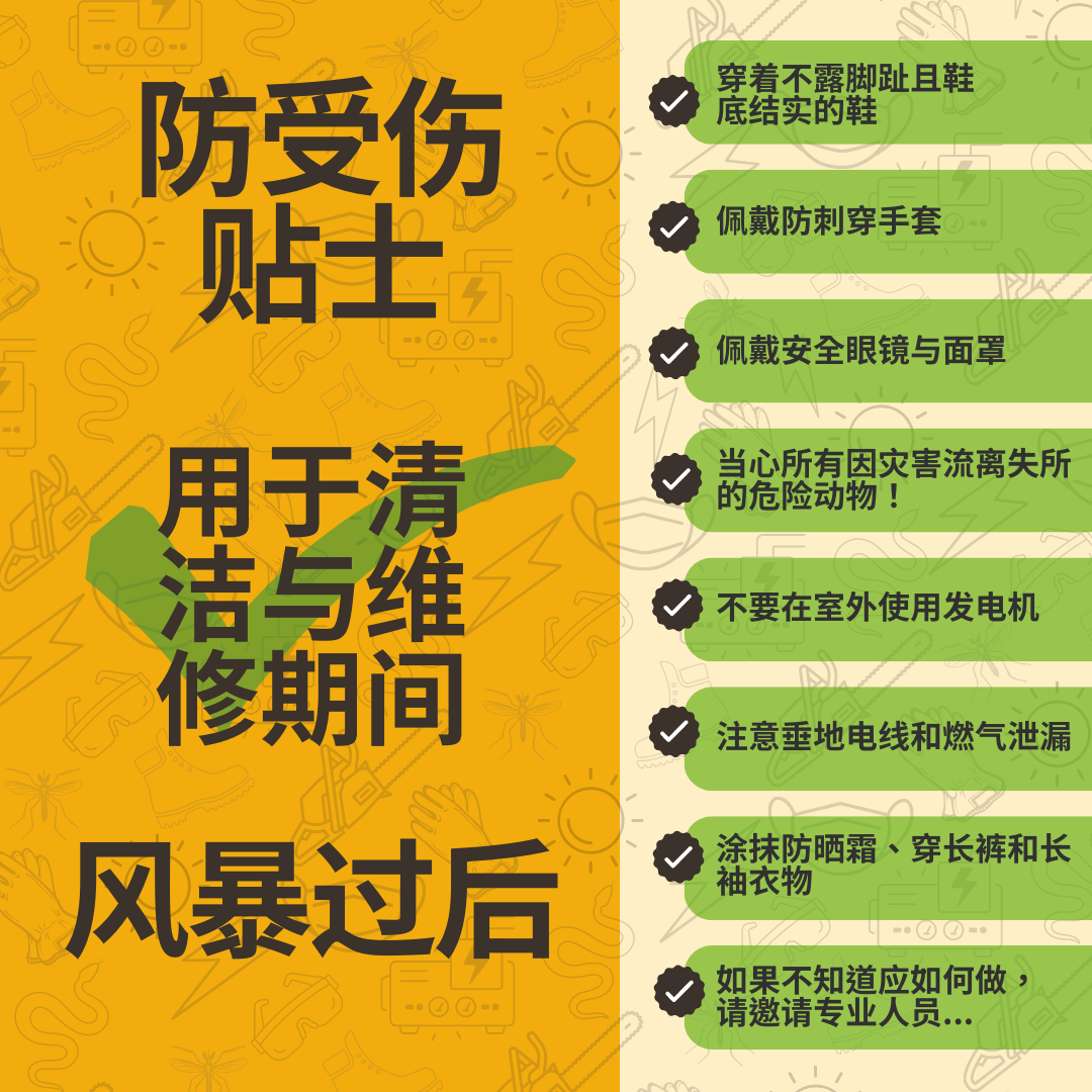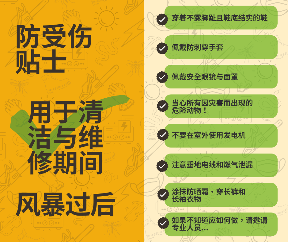 切记,灾难发生后,急救人员的工作量已达极限。不要因可预防伤害而增加急救人员的工作量! 要查看更多信息,请访问 www.putlinkhere.com。感谢您的配合。 #安全第一 #风暴过后 #飓风恢复 #灾后恢复 |