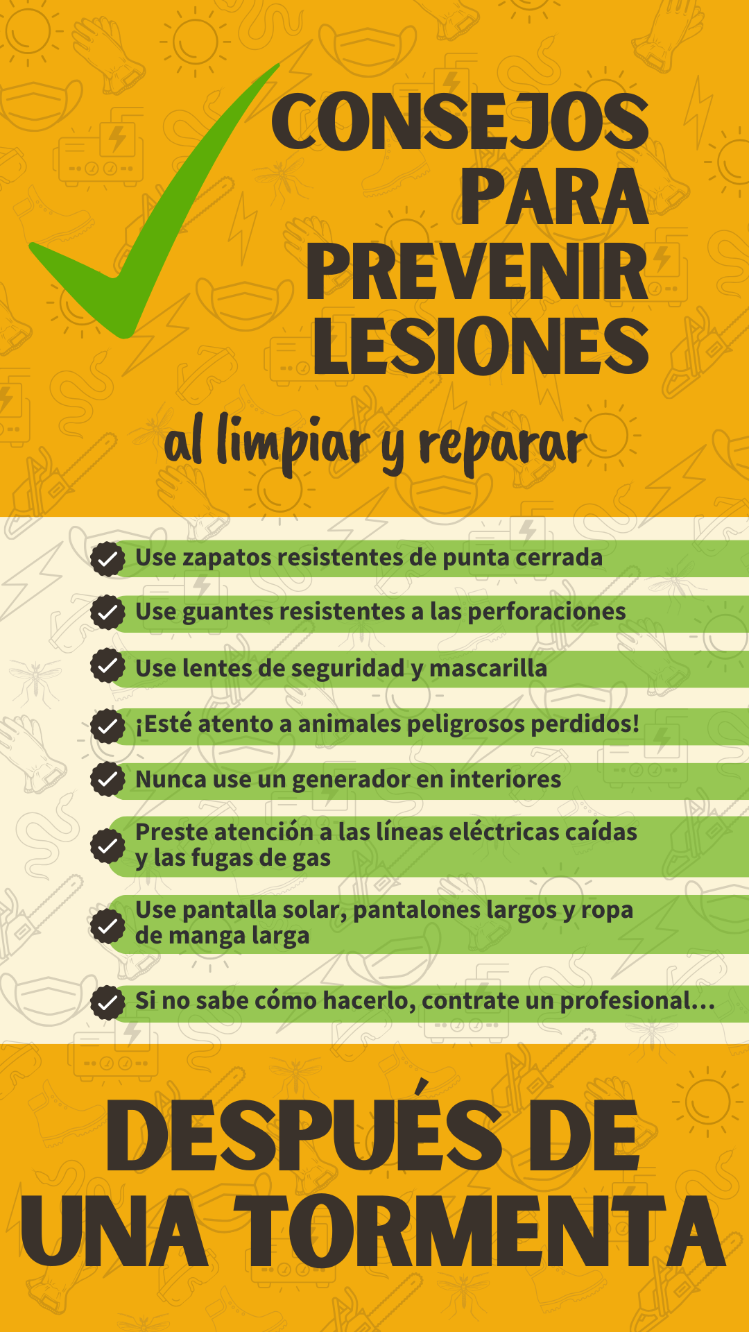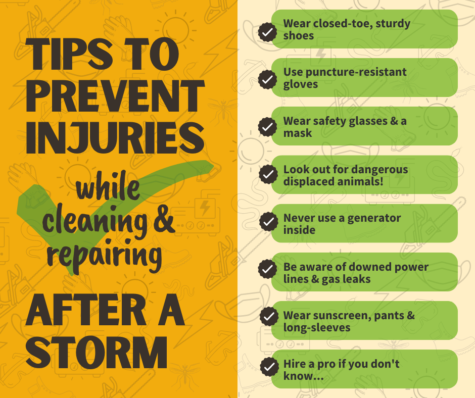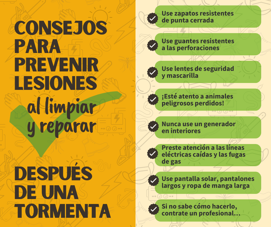 Recuerde: después de un desastre, los primeros socorristas están muy atareados. ¡No permita que una lesión prevenible aumente su trabajo! #SafetyFirst #AfterTheStorm #HurricaneRecovery #DisasterRecovery |